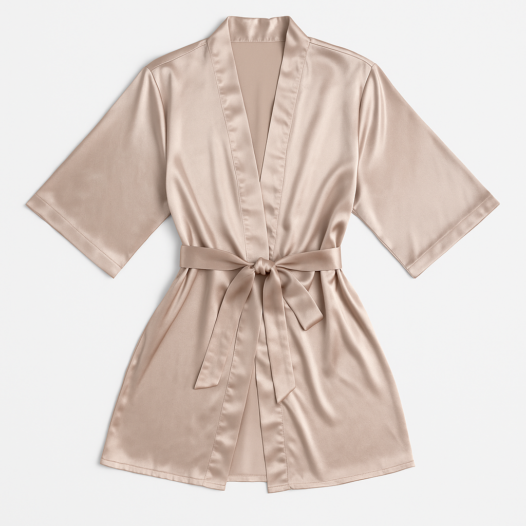 Luce sofisticada en cada momento con el Kimono Lumière. Su silueta fluida y cinturón ajustable lo hacen ideal para complementar tu rutina de belleza, un momento especial o simplemente para sentirte divina en casa. Su acabado satinado aporta elegancia atemporal y comodidad en cada uso.