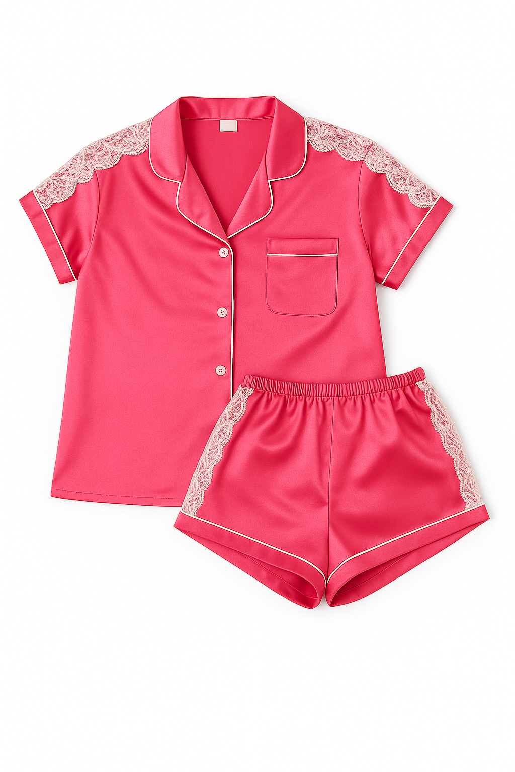Comodidad y feminidad se unen en un conjunto de pijama corto con acabados satinado y detalles de encaje que acarician la piel. Perfecto para noches tranquilas o mañanas relajadas, es ese básico lujoso que convierte lo cotidiano en algo especial.
