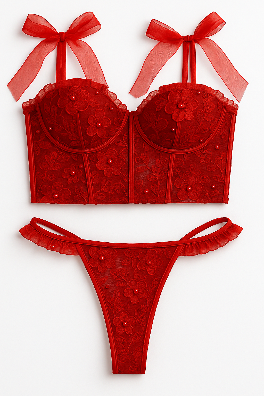 Descubre el poder del rojo con nuestro Deseo Escarlata, un conjunto de lencería creado para elevar tu sensualidad y confianza. Con detalles delicados en encaje, cortes estratégicos y una silueta que abraza el cuerpo con suavidad, este diseño fue pensado para quienes desean sentirse intensas, irresistibles y libres.