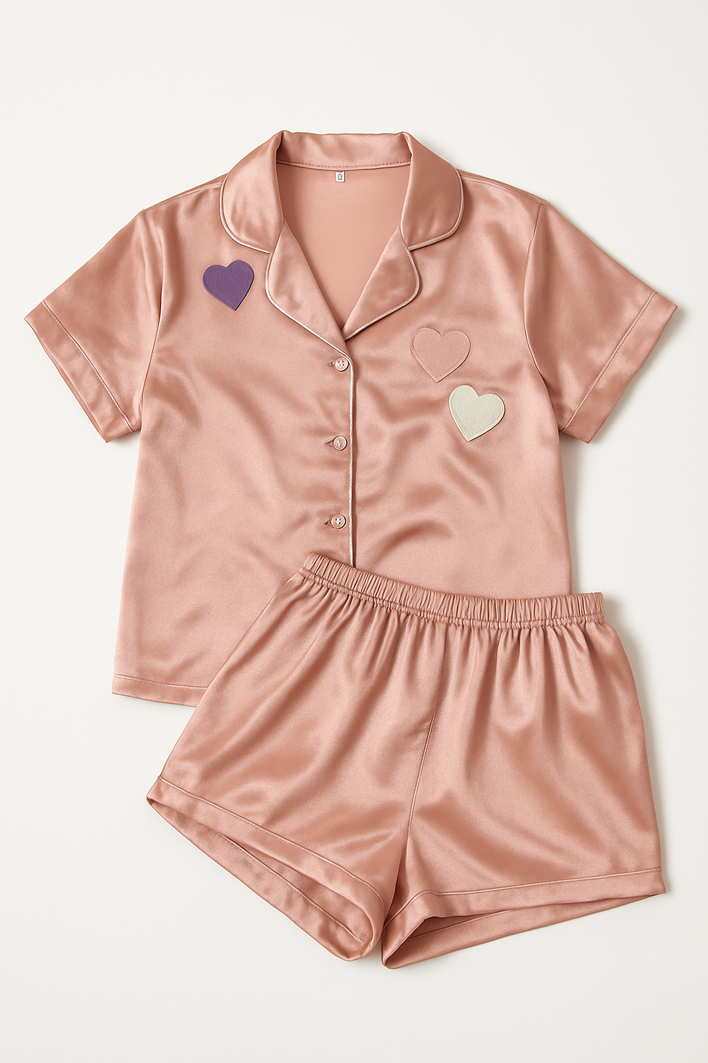 Nuestro set “Dulces Sueños” combina el confort del satén suave con un diseño personalizado lleno de encanto. Incluye camisa con cuello clásico y short de pretina elástica, ambos en un delicado tono rosado. La parte trasera luce un bordado colorido con tu nombre o palabra favorita, haciendo de este conjunto un regalo perfecto o un capricho personal. Disponible bajo pedido y en todas las tallas, este set celebra tu estilo único incluso a la hora de dormir.